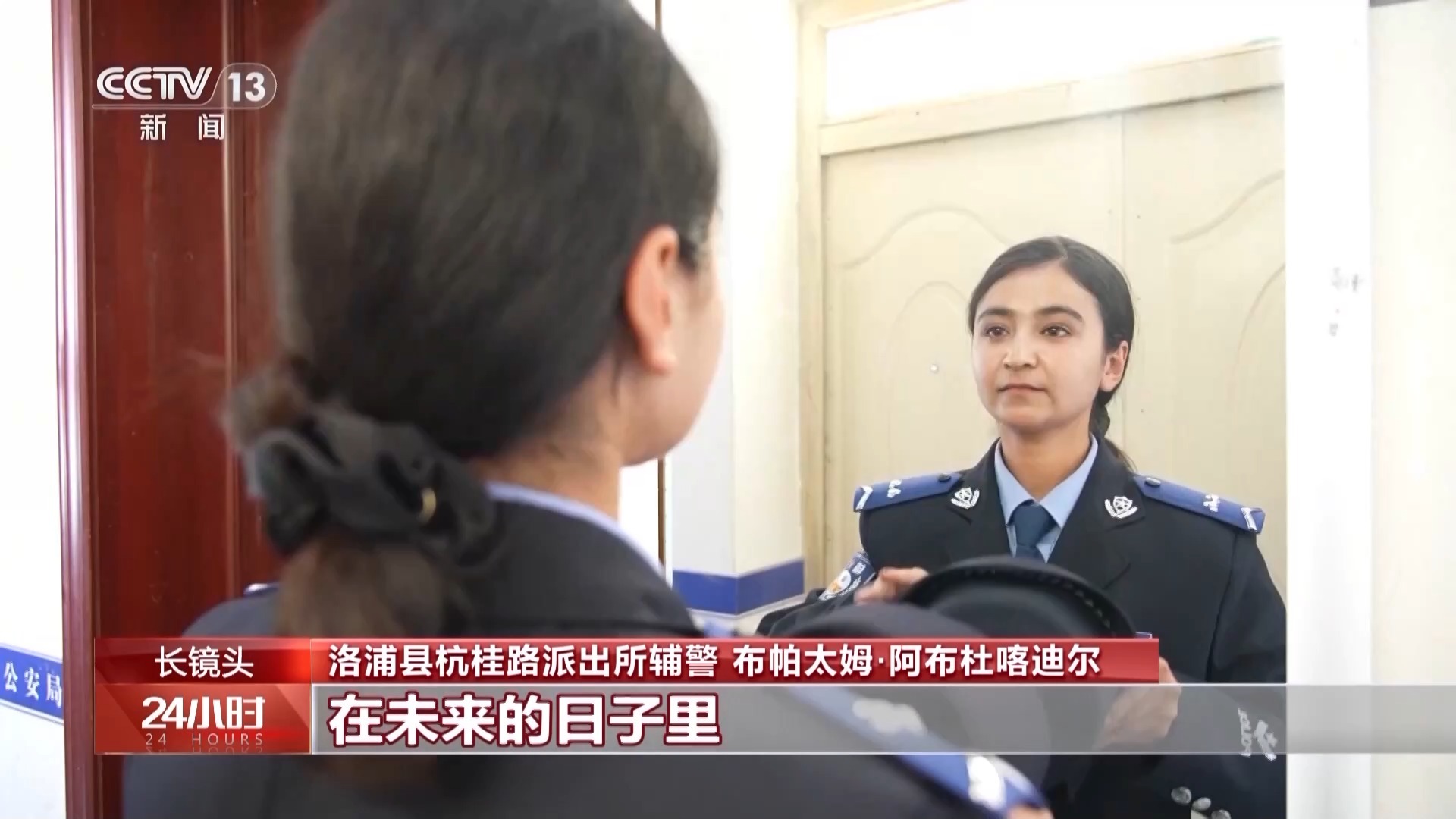 洛浦县杭桂路派出所辅警布帕太姆·阿布杜喀迪尔:从小时候开始,我的梦想就是当一名警察。我的哥哥比我大4岁,他也是一名警察。我感觉,当一名女警察能帮助到周围的人,而且穿上这身警服很帅气。