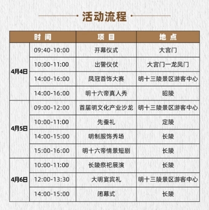 清明小长假期间,在长陵景区还会举办明十六帝情景短剧,在明十三陵游客中心举办凤冠首饰大赛初赛和2024年明文化产业论坛两个特色活动。