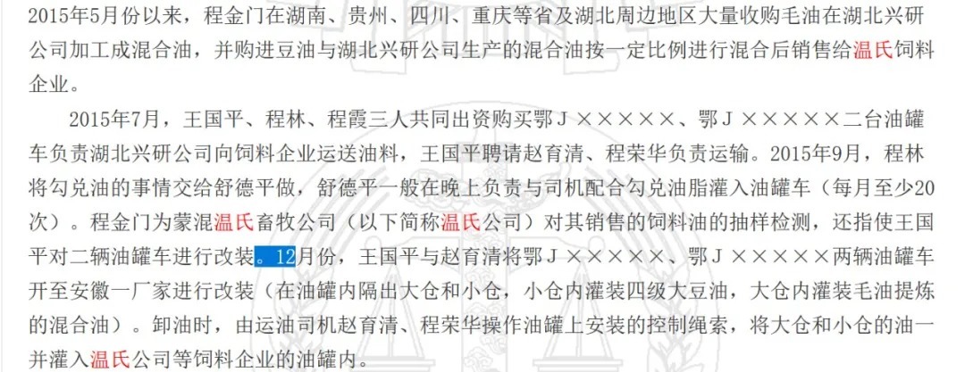 此外,温氏股份子公司还涉嫌收购不合格大豆油。据《程金门、程杰生产、销售伪劣产品二审刑事裁定书》,温氏股份控股子公司监利温氏畜牧公司曾收购程金门等出售的不合格大豆油。