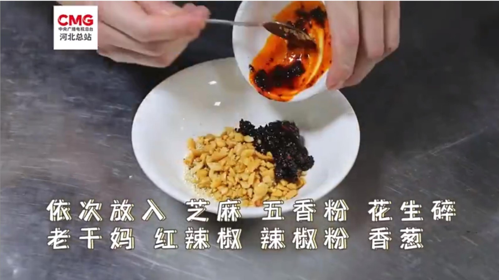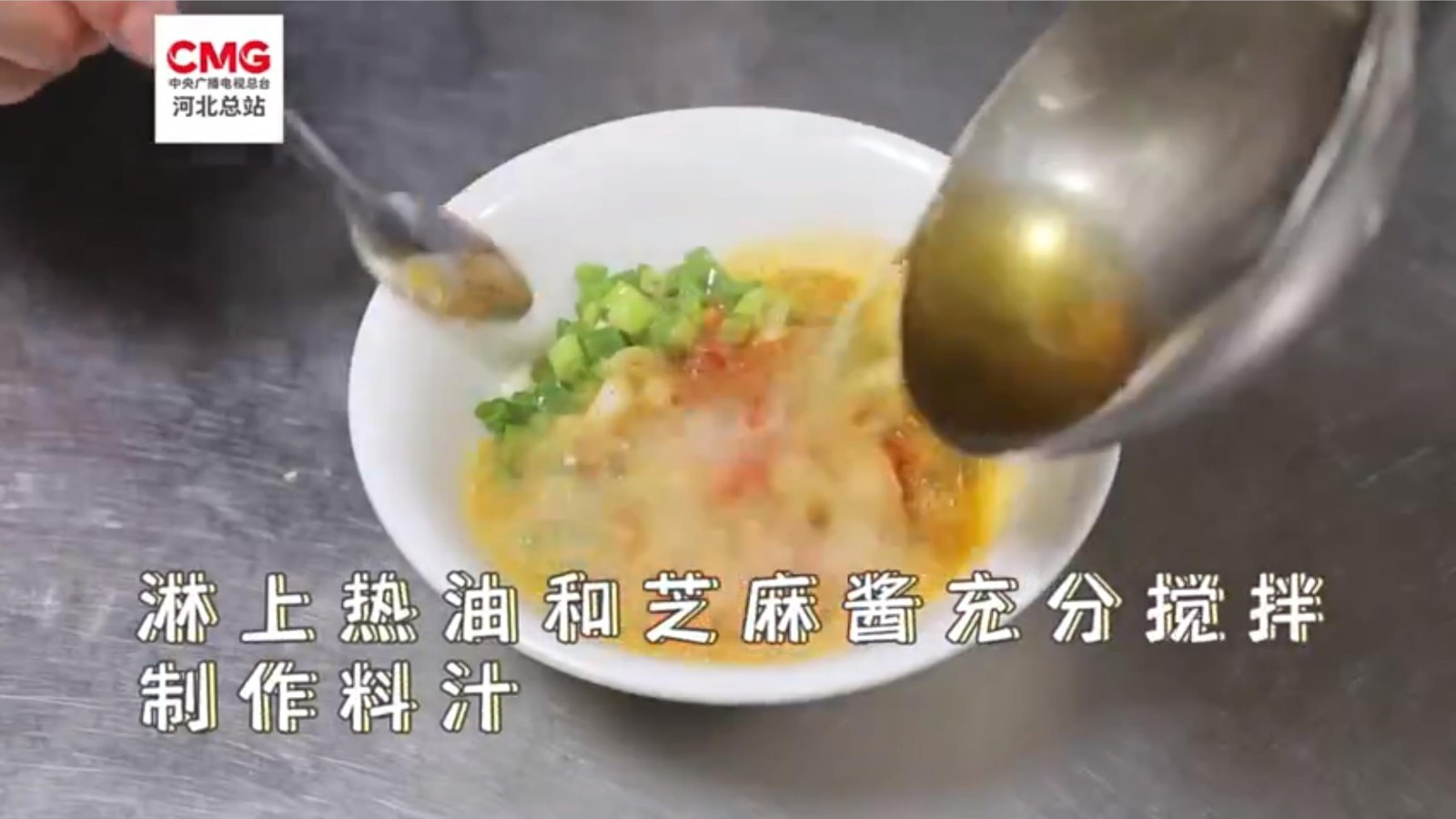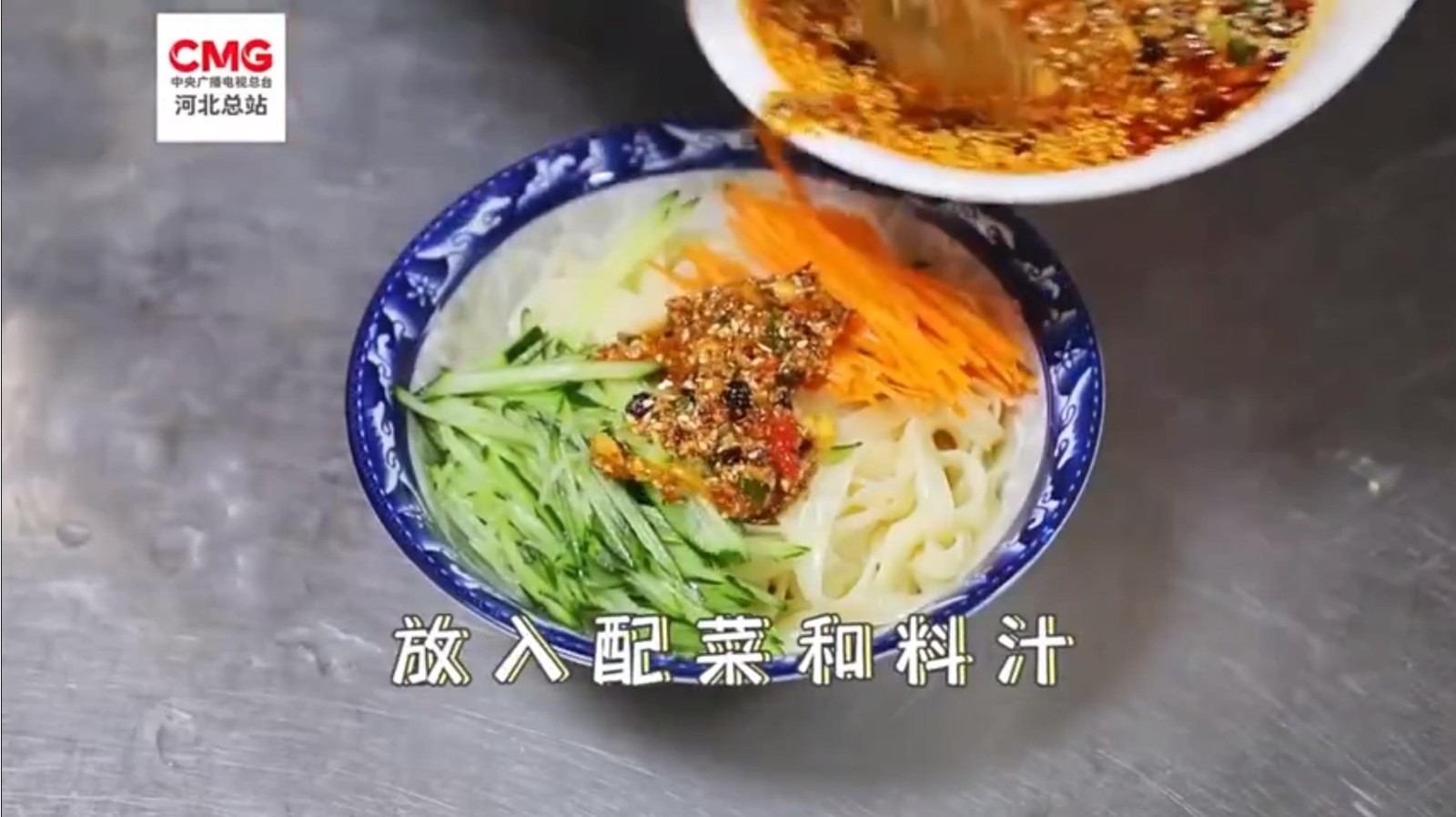 在河北省大名县,麻酱凉面是当地人夏季必做的美食。料碗中放入芝麻、五香粉、花生碎、辣椒粉等,淋上热油和芝麻酱充分搅拌,再将做好的酱汁浇在面上,一碗麻酱凉面味道香醇,好吃且易上手。