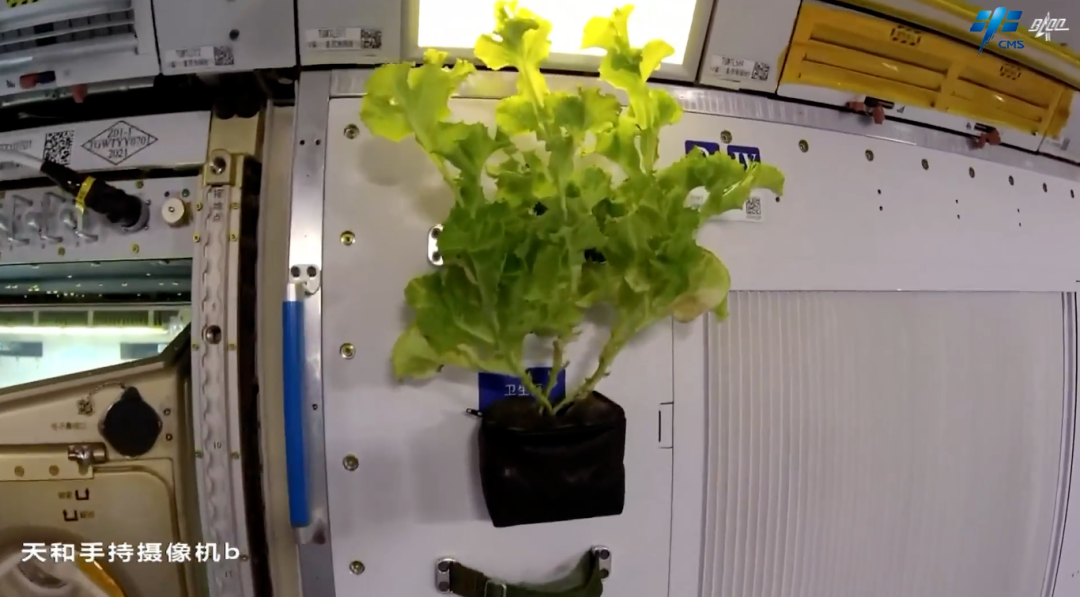 9月10日中秋节当天,乘组迎来了一份特别的“加菜”——他们携带的菜种经过近三个月的种植培养,长成了两株绿意盎然的“太空生菜”。