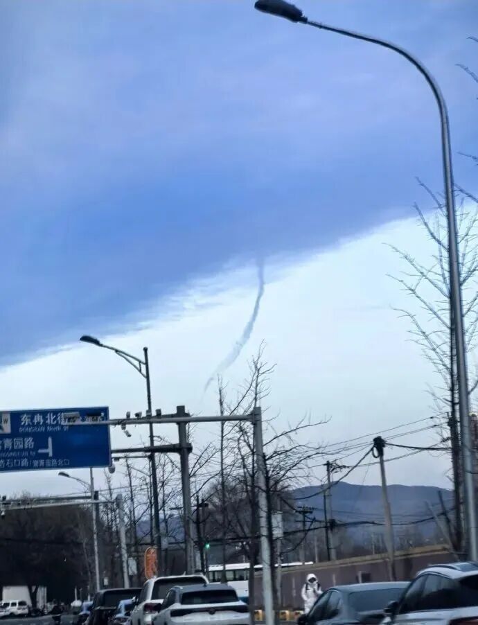 2月5日,不少网友拍到北京西边方向天空有疑似“龙卷风”,这到底是啥?中国天气首席气象分析师信欣表示,这可能是云里有些垂直切变形成的漏斗云,不过没接地,应该不算龙卷。