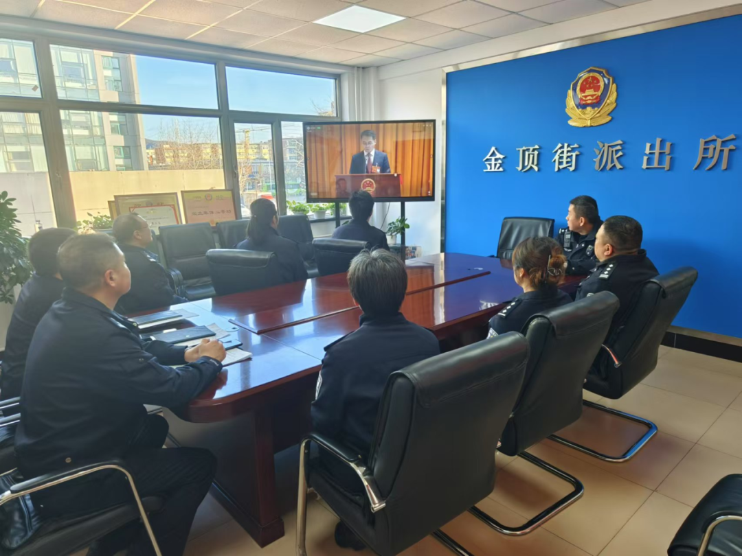 石景山公安分局金顶街派出所集中组织民警代表收看区人大开幕直播,聆听政府工作报告。会后,大家心潮澎湃,深受鼓舞,纷纷表示:将以报告精神为指引,以更加强烈的使命担当、更昂扬的精神斗志、更饱满的工作热情,忠诚履职、笃行不怠,牢固树立“派出所主防”理念,认真履行主防职责,紧紧围绕“基础牢、出事少、治安好、党和人民满意”的工作目标,全力守护辖区平安,为“平安石景山”建设作出新的更大贡献。