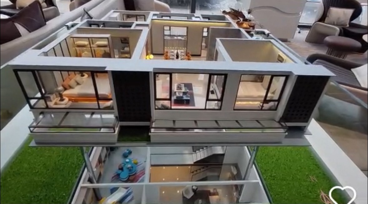 业主钱先生(化姓)翻出当初销售介绍沙盘的视频,沙盘呈现的与眼前的现状截然不同,视频里销售人员清晰介绍着,“大家欣赏到的是我们 108 平(方米)的下跃户型,这是我们一个一层的面积,现在缓慢上升的就是我们的夹层和负二层……”。