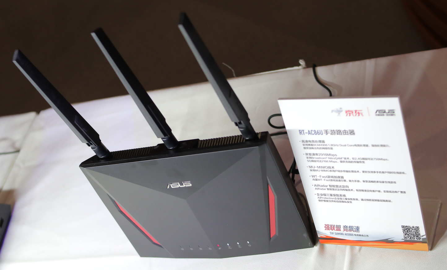 手机等智能用户端频繁迭代,硬件性能高速更新,强大的硬件平台致使手机游戏市场日益爆棚,王者荣耀注册用户已破2亿,为满足消费用户市场需求,华硕推出的手专业路由器RT-AC86U,立式机身设计和三天线布局,硬朗分明的机身线条和2根红色的纵深腰线突显电竞血统;1.8GHz高性能专业处理器、全千兆网口和USB3.1接口加持,搭载的全新ASUSWRT Dashboard UI固件也针对家庭用户进行特别优化。支持802.11ac无线规格,2.4GHz/5GHz双频并发速率高达2900Mbps,支持4X4 MU-MIMO无线技术,适合和小伙伴一起开黑;而新一代的智能雷达AiRadar2.0无线传输技术,通过算法智能加强无线连接能力,动态追踪移动设备,为用户提供更强、更稳定的Wi-Fi,配合QoS智能流量管理,让用户享受低延迟的上网体验。