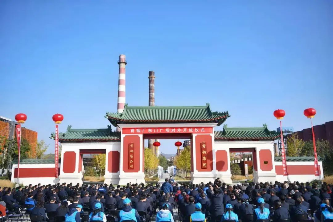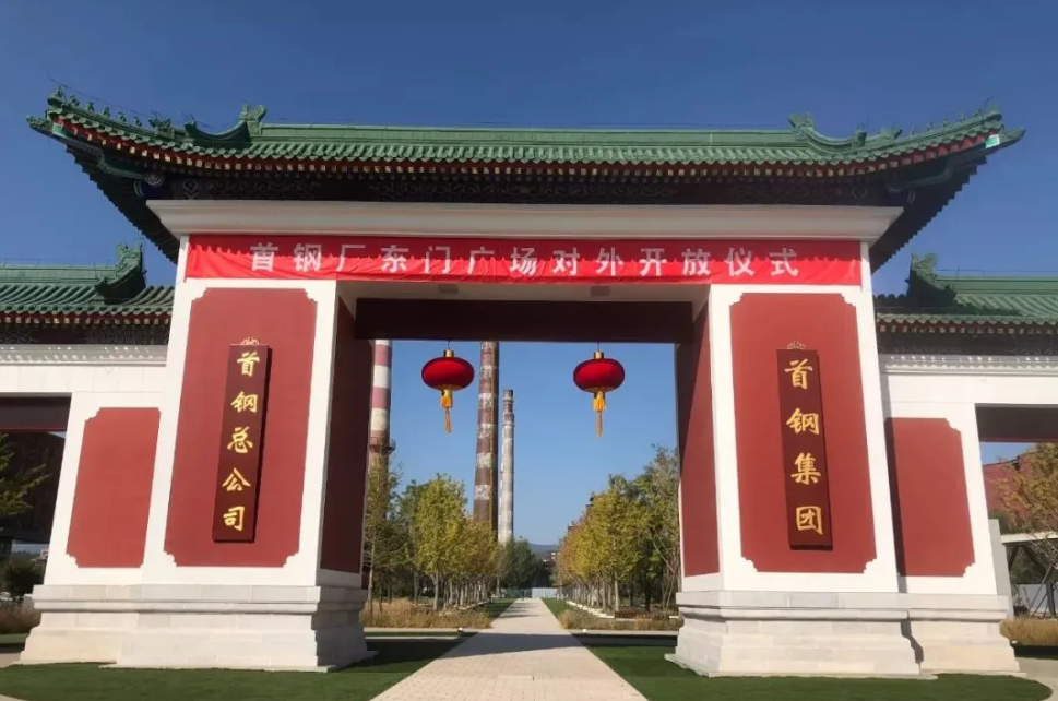 2019年10月,首钢厂东门向社会开放。新的厂东门在新首钢高端产业综合服务区内“L”型景观带中按照1:1比例复建老的首钢厂东门。重新复建的厂东门完整保留了原貌,将继续承载着首钢人的精神寄托,见证百年首钢再创新的辉煌。