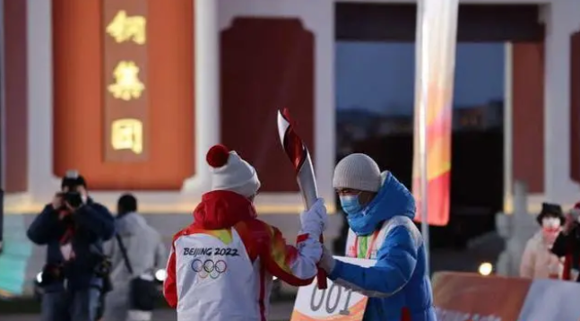2022年2月2日,首钢园厂东门,火炬手、清华大学建筑学院院长张利从志愿者手中接过火炬,他是首钢园站的第一棒火炬手。