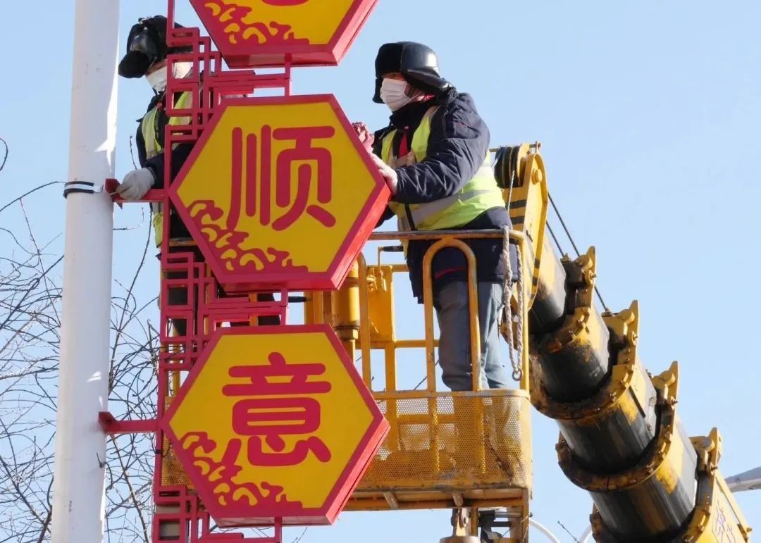 记者从顺义区城市管理委了解到,为了做好2023年春节及元宵节景观布置工作,营造传统佳节浓郁热烈、欢乐祥和的景观氛围,顺义区已经正式启动区内部分主要道路和重要点位景观布置现场施工工作。