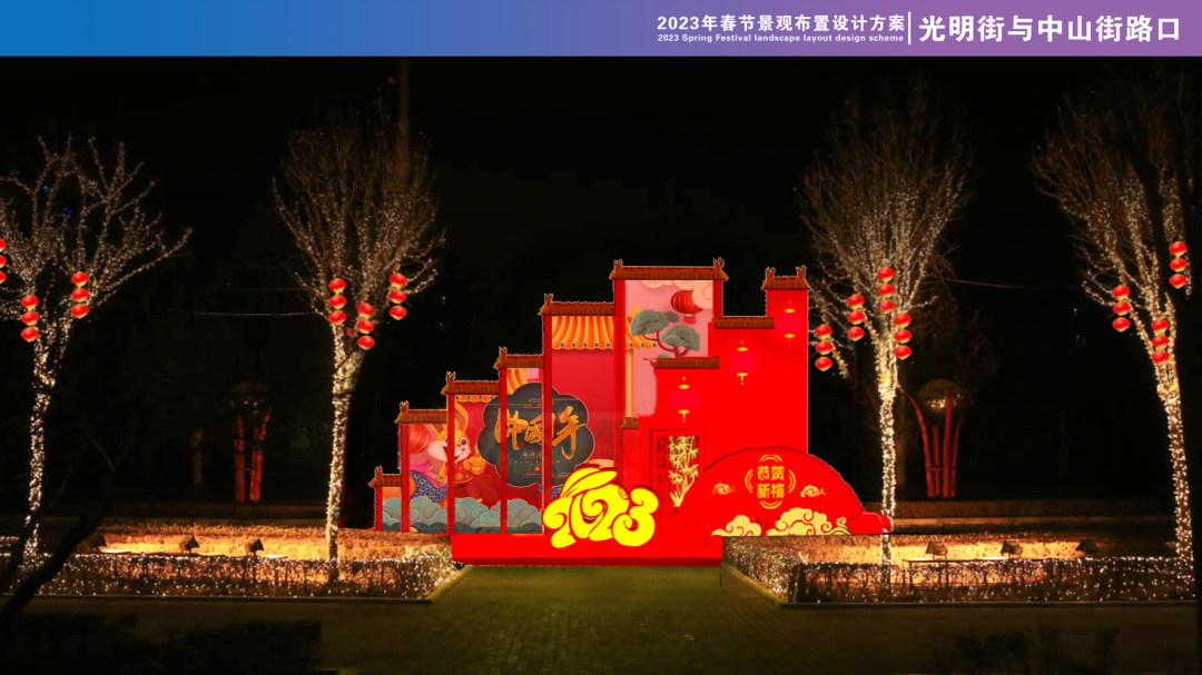 顺义区城市管理委市容景观管理科工作人员黄经纶告诉记者:“此次春节景观布置工作早在2022年7月份就开始启动设计了,全部景观布置涉及27条景观道路和13处景观节点,会形成‘一核心、两轴线、四节点、多周边’的景观分布。”