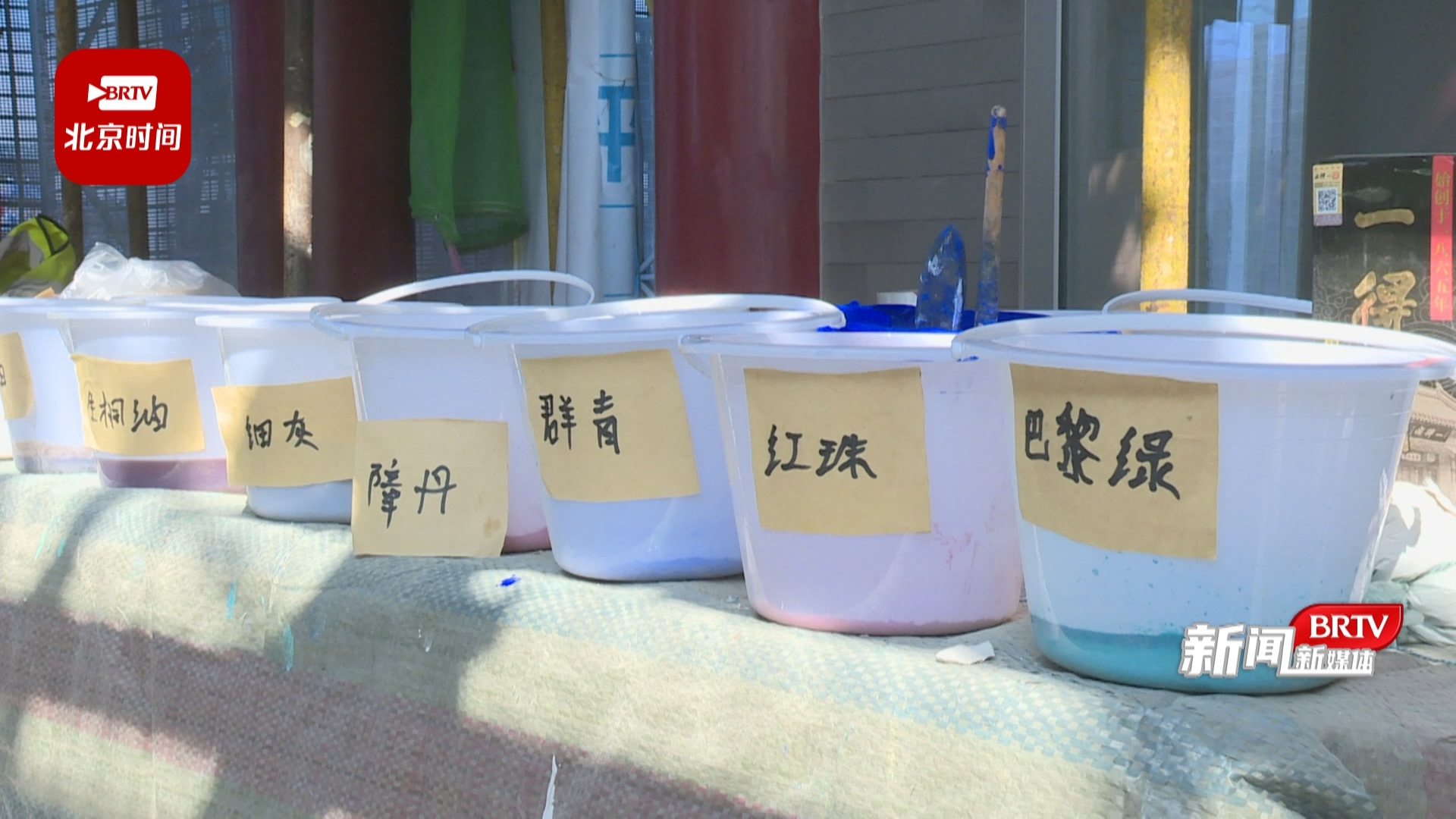 前门五牌楼项目古建油饰彩画专家 罗德阳:“从油活儿这块斩砍见木,把这层裂的一定要砍掉,然后进行汁浆,这是我们油活儿里的术语,等于是给结构洗个澡。现在咱们这道灰的直接跟它粘连,很瓷实,你给它整个清理掉,然后再旧貌变新颜。”