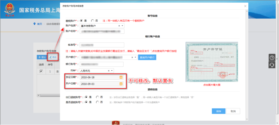 需要注意的是,如果您有多个存款账户,只能选择一个作为退税账户!设为退税账户之后,退税申请表中就会自动显示该账户信息!