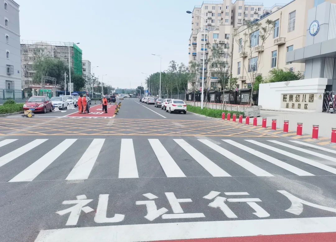 新学期开学前,区城管委对旺泉幼儿园、龙泉苑幼儿园、黄城根小学、顺义二中、牛栏山一中实验学校、开放大学6所学校周边道路的交通安全设施进行优化提升,全力保障师生出行安全。