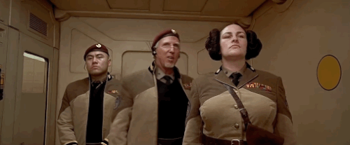 与此同时Luc Besson也恶搞了在科幻电影迷的心目中,有着至高无上地位的《星球大战》。《第五元素》中仅仅出现了几分钟的这位小配角,艾少校有着滑稽的动作和外表,而她的发型竟然和1977年版《星球大战》里的莉亚公主梳着一模一样的发型。