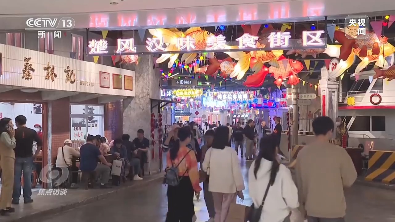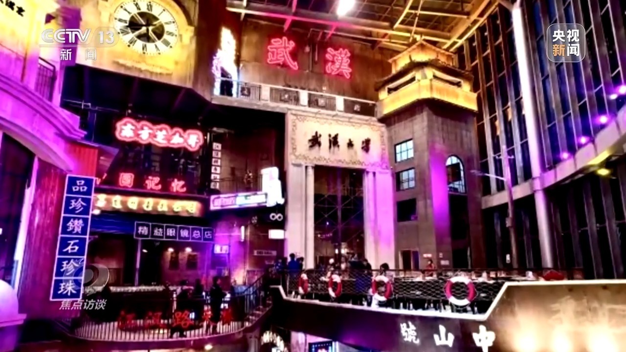 武汉梦时代是全球最大的纯商业体,把商业文化旅游体育很多业态融合在一起,日均客流量有10万人次,在它的地下一层,是一个可以沉浸式体验的美食街区楚风汉味。这里多方位多场景还原了老武汉码头的文化与情怀,是一种怀旧式的国潮风。