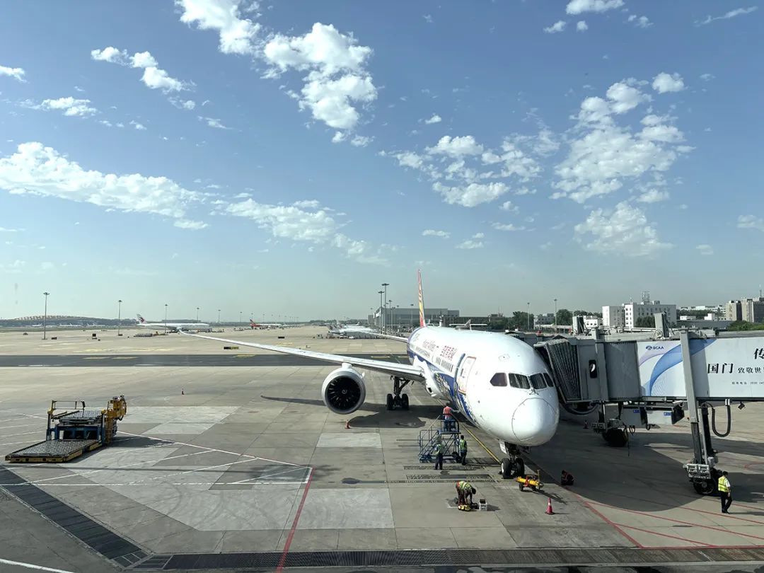 首都国际机场飞机准备起飞。