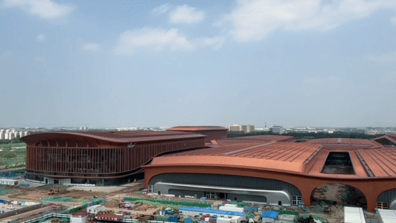 新国展二期项目金属屋面和幕墙工程已经完工。