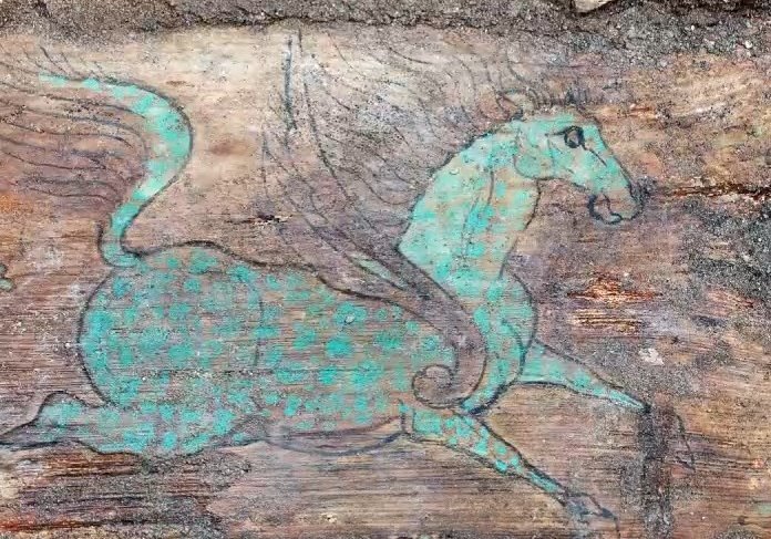 棺座之上,有着两匹独特花纹的天马。