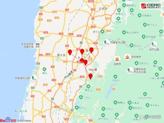 周边县城:震中距水上乡2公里、距西区5公里、距东区8公里、距太保市9公里、距白河区10公里,距嘉义市7公里,距台北市213公里。