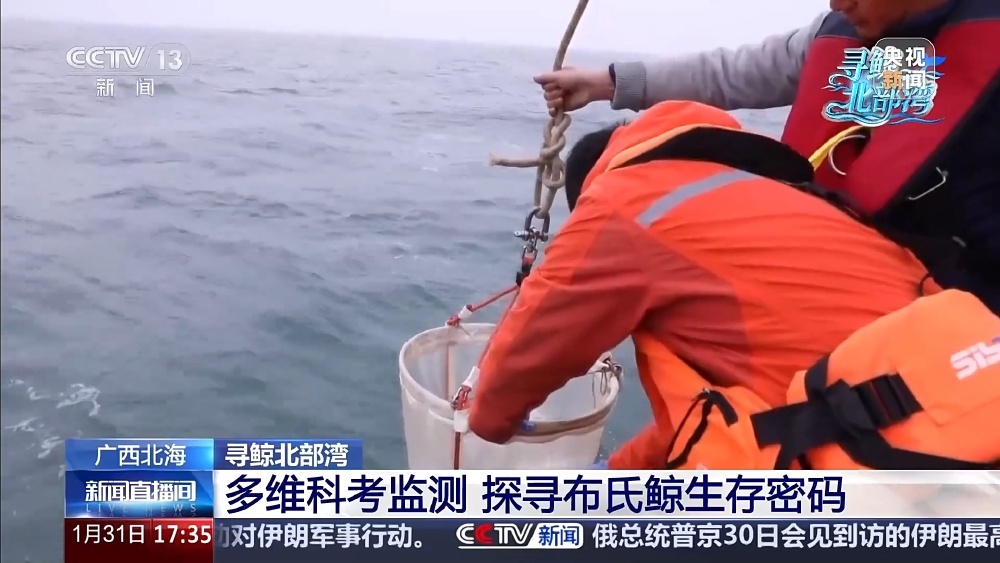 深入了解布氏鲸,还要持续观察它。完成夜间采集工作的科研人员,经过短暂休整,再次出海,利用无人机跟踪拍摄布氏鲸的行为活动,记录各种数据。同时,再次监测白天的海水水质。
