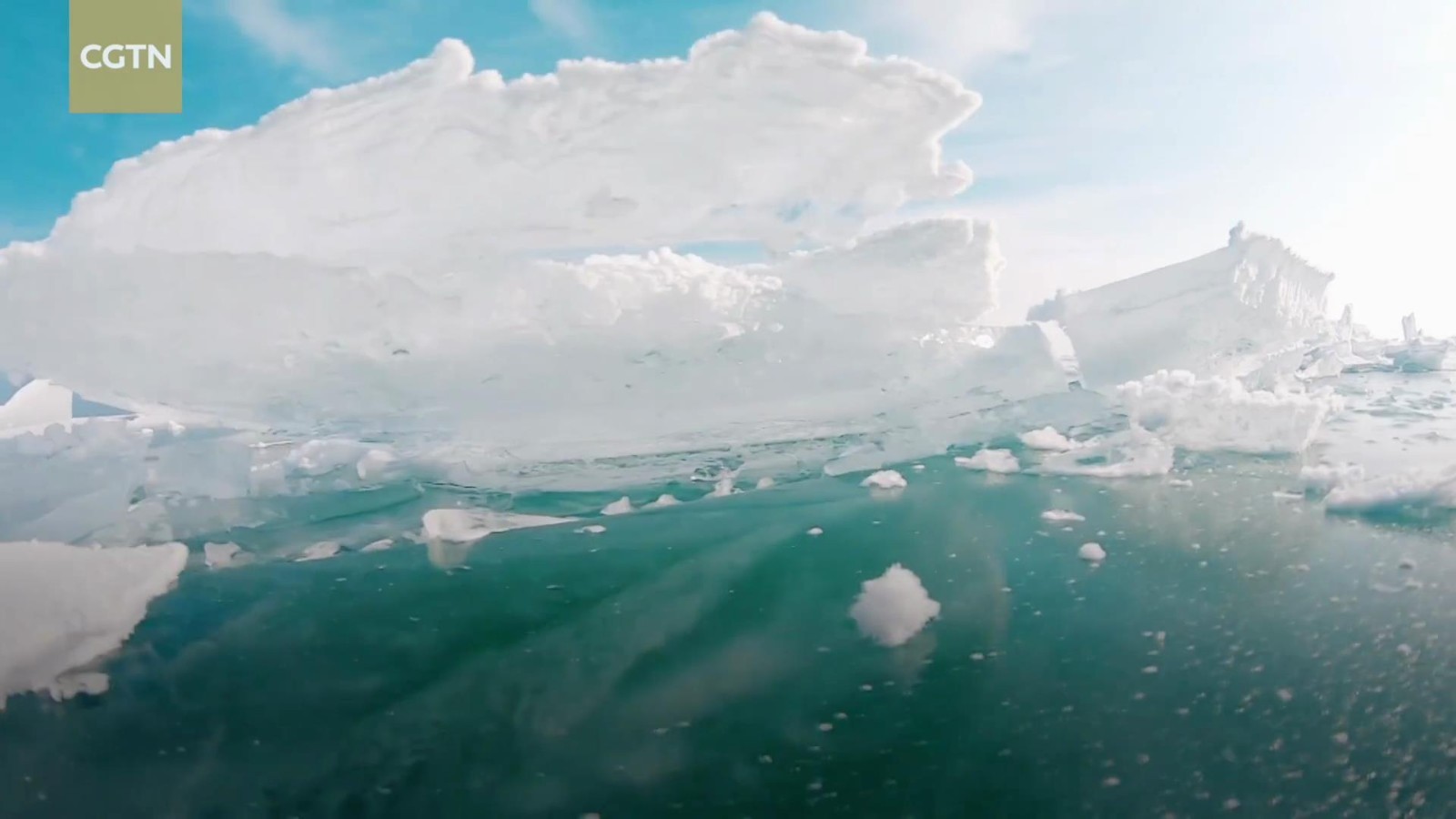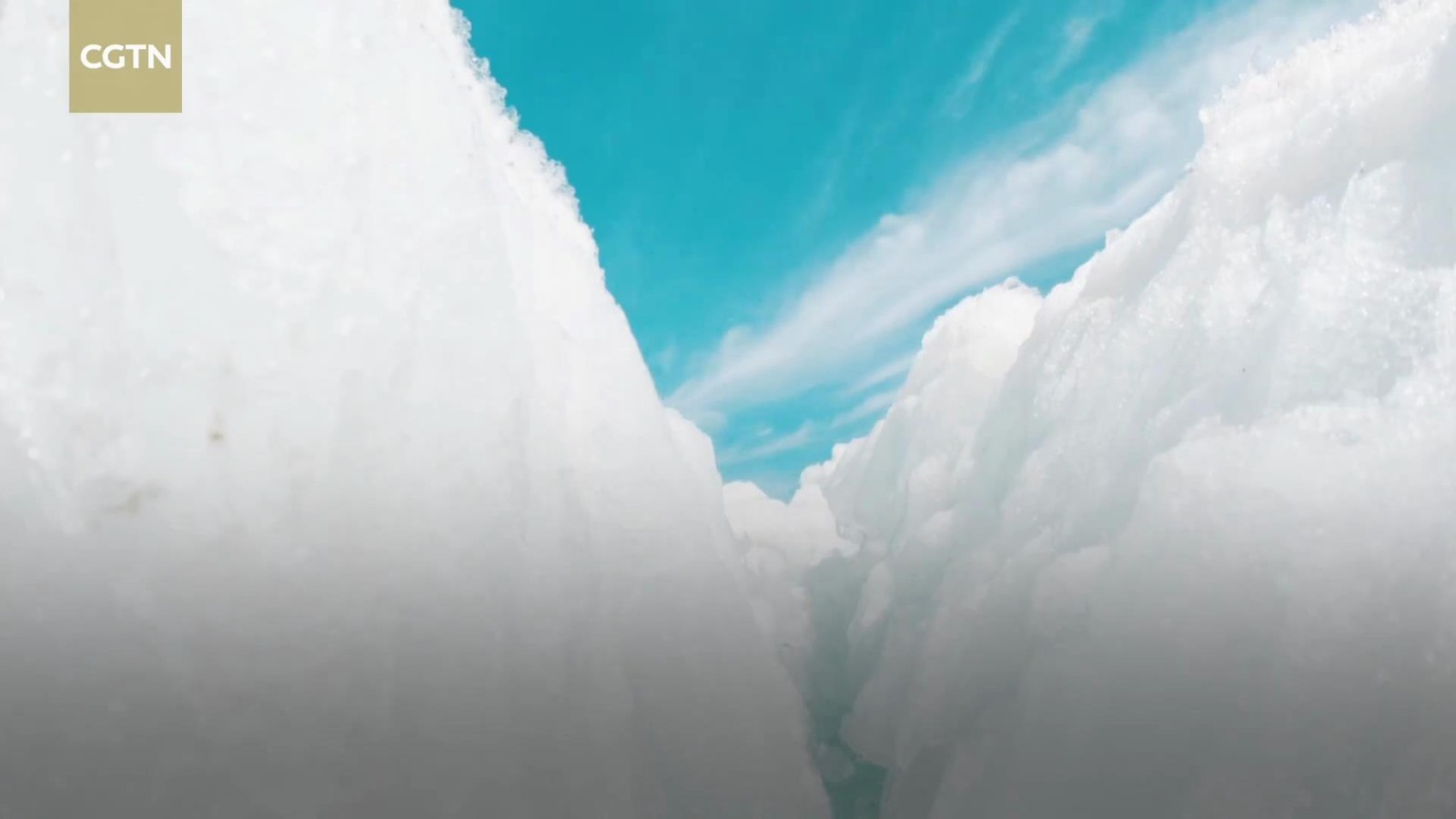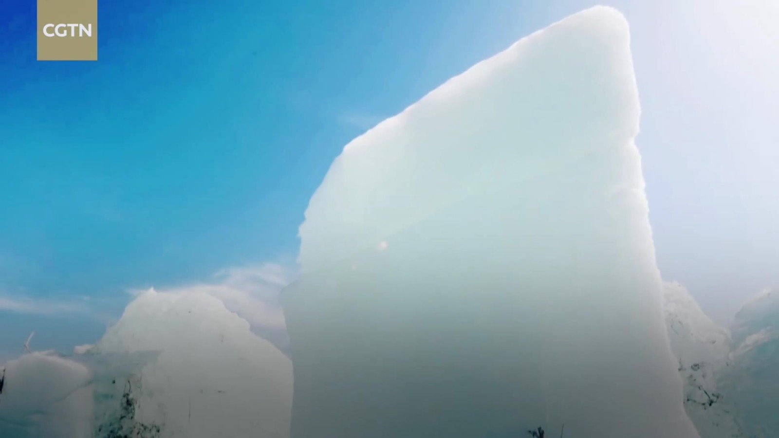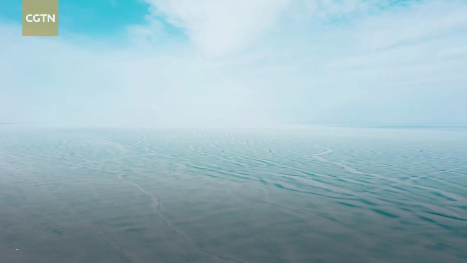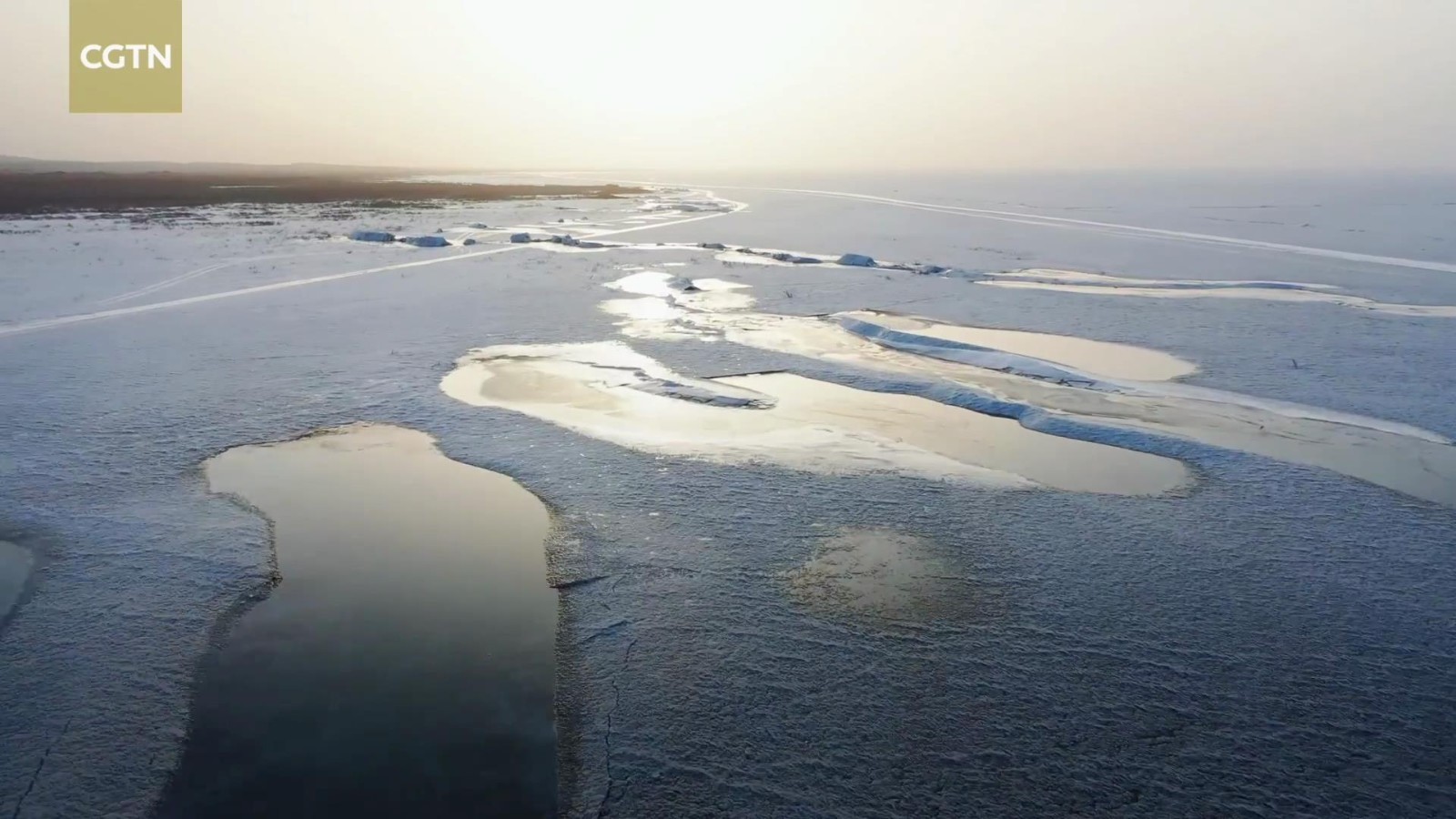 我国内陆最大淡水湖博斯腾湖出现推冰奇观,冰蓝、湖蓝、天蓝交相辉映,美如画~