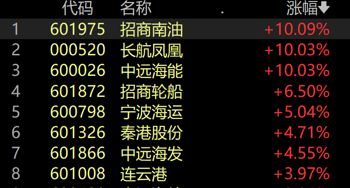 港口航运板块拉升,长航凤凰、招商南油、中远海能涨停。
