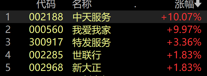 房地产开发及服务板块异动拉升,栖霞建设涨停,此前我爱我家、中天服务涨停,国创高新、特发服务、世联行、招商积余、新大正等跟涨。