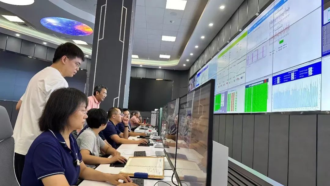 7月23日12点45分,各系统认真核查,并完成开机准备单签署后,高能同步辐射光源储存环正式开机调束。当天,开机仅三个小时即实现了单束团电子束的高能输运线传输及储存环首次在轴注入,随后成功实现单束团电子束绕储存环首次循环贯通。8月6日凌晨,高能同步辐射光源储存环首次成功实现单束团束流存储。随后启动多束团注入调试,并通过斜四极铁强度调节、全局及局部闭轨测量与校正、注入束电荷量及稳定性优化等手段,持续提升存储流强和束流寿命。8月18日,储存环成功存储35个束团,流强达到12毫安。