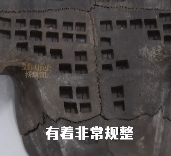 目前,已拼缀出的几乎完整的卜甲有55件,数量惊人,完整的、囫囵个的。它们比记者的手掌还要大几圈,通体黝黑。而且,卜甲的一面有非常规整、就好像用现代化模具才能整齐切割出来的方块凹槽。古人根据凿刻出来产生的痕迹,背面的裂纹叫“兆纹”,来问卜大事吉凶。可是,这55片几乎完整的卜甲上,考古人员没有找到一句占卜的话语,连一个刻字都没有。