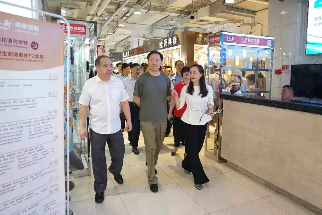 张延昆书记来重要场所秀水街市场检查,秀水街市场董事长张永平在介绍关于秀水街的情况。