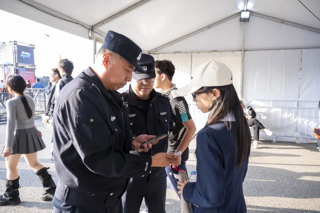 为了应对可能出现的雨天和大客流情况,延庆区多部门协同联动,从安全保障到服务细节,全方位精心筹备。现场配备了专业的医疗点,公安、消防及医疗团队全程坚守岗位,随时应对可能出现的突发状况,为乐迷的安全保驾护航。执法人员及时清理无照游商,维护市场秩序,确保乐迷能够在一个规范、有序的环境中享受音乐节。各路口安排了安保人员疏导人流,避免出现拥挤踩踏事件,让整个音乐节在安全、有序的环境中进行。