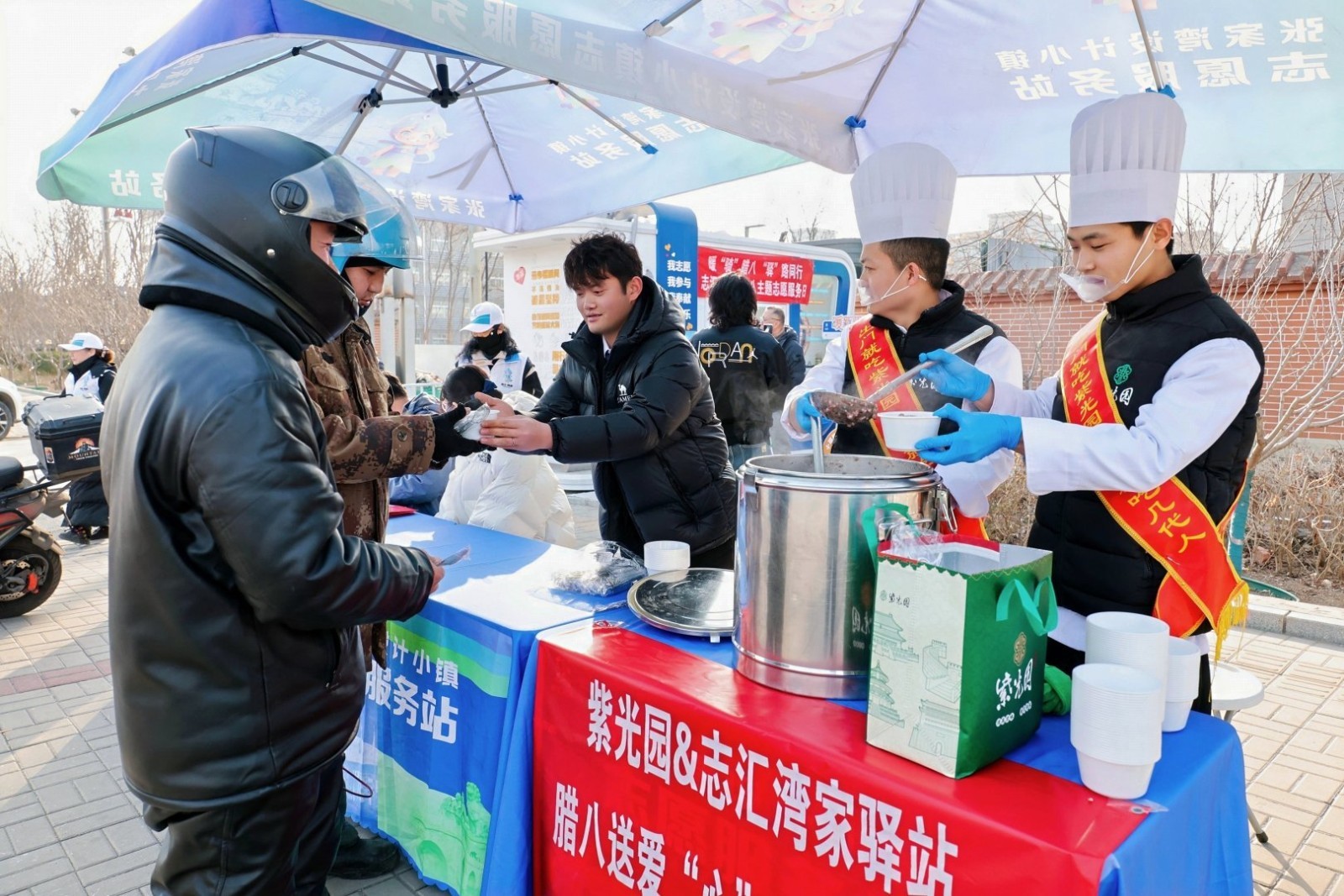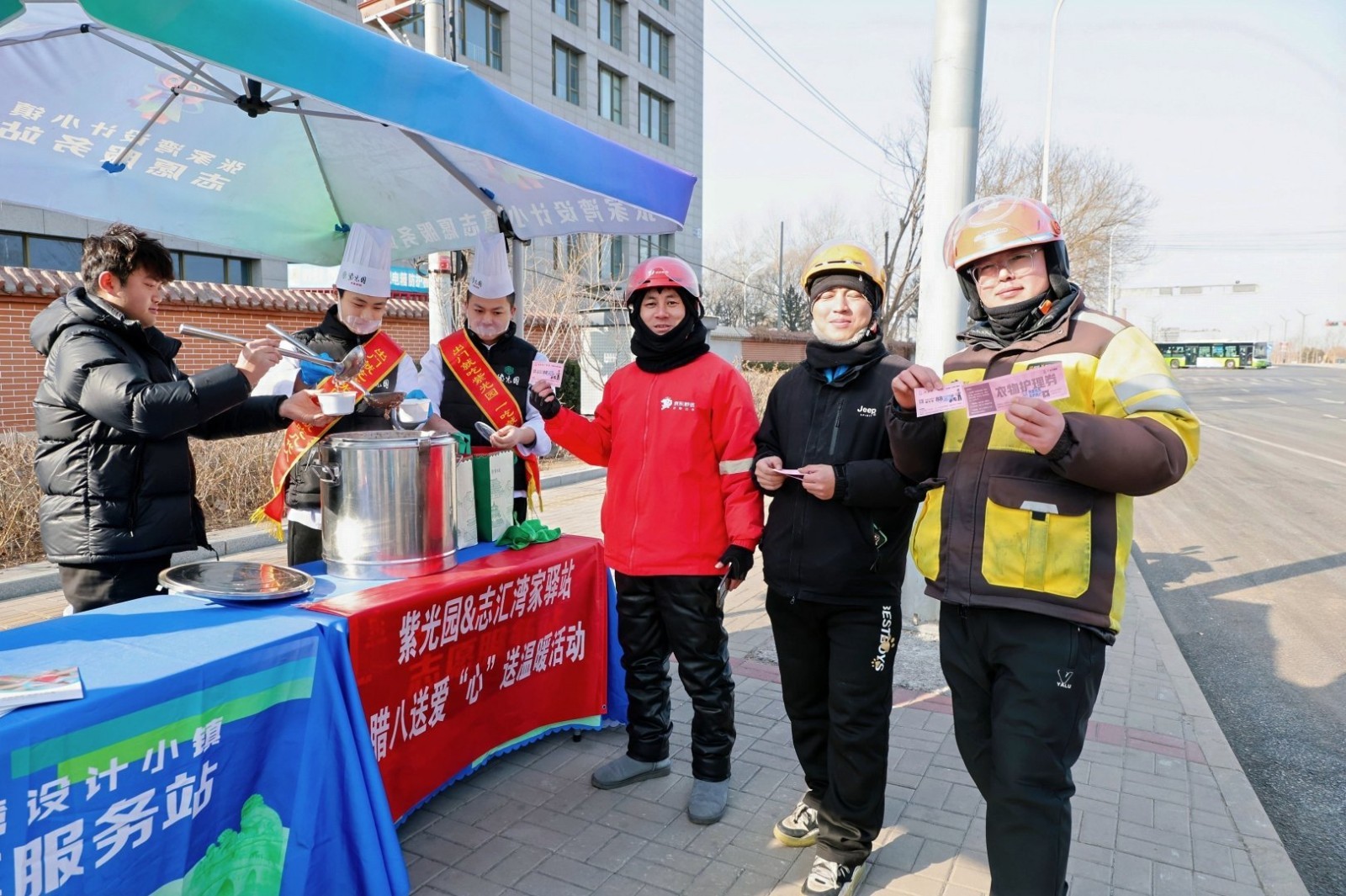 针对新就业群体户外奔波、冬季保暖及日常便利等需求,商户们各展所长、精准对接。深耕本地的紫光园(环湖小镇店)率先对接志愿驿站,不仅熬制了香甜软糯的腊八粥供骑手们暖心暖胃,更定制了长期可用的用餐折扣券,让节日关怀转化为常态化福利。“新就业群体是城市运转的‘摆渡人’,我们一直想践行企业的社会责任,为他们做点实事。”门店负责人张经理的话语道出了初心。