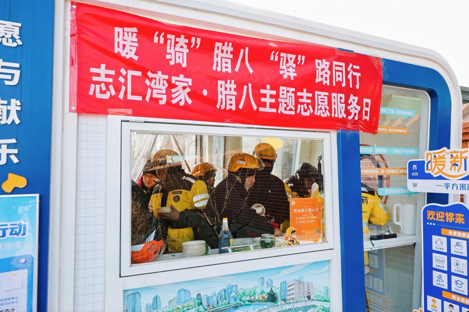 “数九寒天里,能就着爽口的腊八蒜吃上一盘热乎饺子,这一身的寒气都散了,我也算正正经经地过了腊八节。”1月26日中午,刚送完午高峰订单的外卖骑手李师傅,笑着坐在“志汇湾家”志愿驿站里,搓了搓冻得通红的双手,接过志愿者递来冒着热气的饺子,迫不及待尝了一口,又忍不住补充道:“今天这饺子,味儿真香。”