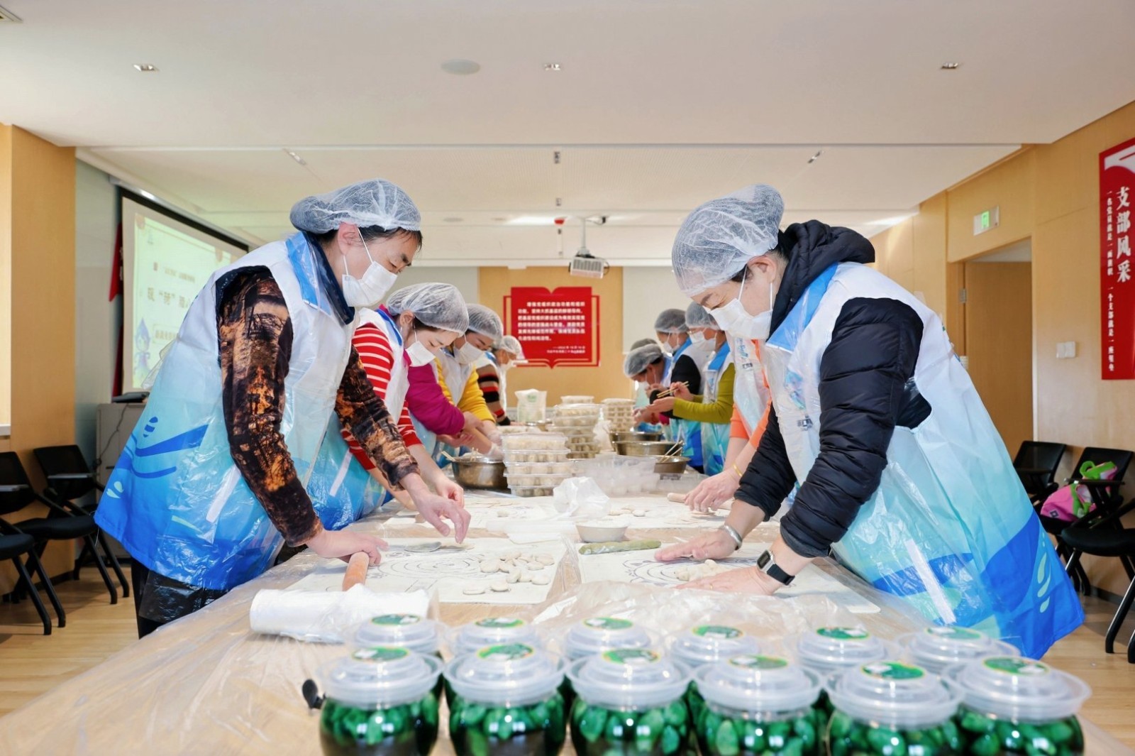 活动当天,大家早早来到现场,志愿者金姐一边利落地揉着面团,一边热心叮嘱:“这饺子是包给自家兄弟吃的,馅儿得实在,边儿得捏紧喽!”话音落下,大家便分工协作,揉面、擀皮、调馅、包捏……指间翻飞间,2000余个饱含心意的饺子便准备就绪。