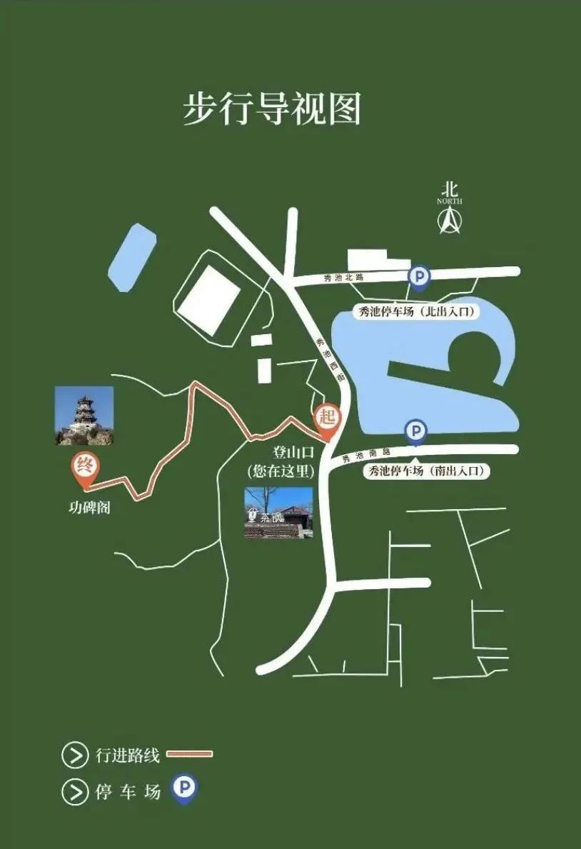 前往功碑阁需登山,步行导视图↑