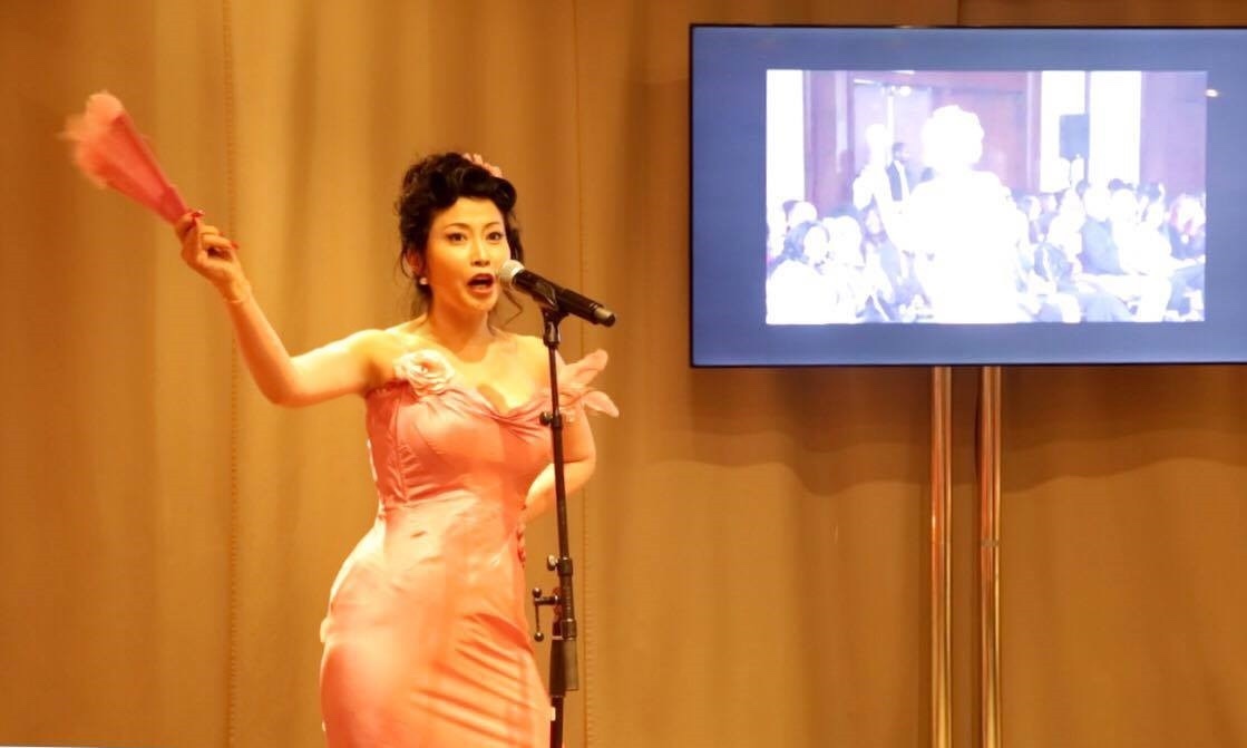 晚会演出现场,龙珑对三首经典曲目进行了混编并用中英法三语演唱,可谓是精彩绝伦,获得了全场喝彩。她将爵士、华尔兹、百老汇表演方法融入经典法语歌曲《我愿活在梦中》,将百老汇及英文融入《夜上海》,将中英法文爵士、探戈、踢踏舞形式融入《玫瑰人生》,再配合她专门为此次表演设计的三套表演服装,整个表演都体现了不同文化相互交融的艺术特色。