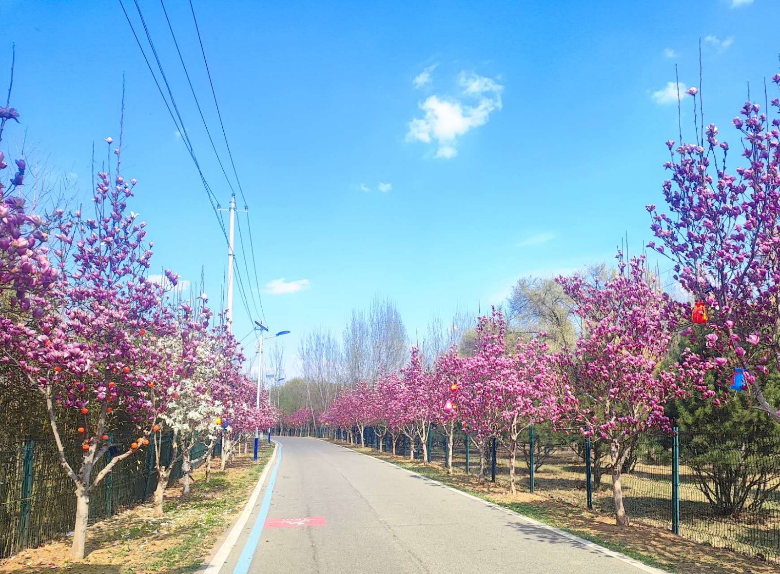 平东路作为平谷“南大门”,是八方来客入平的首条景观大道。大道以碧桃、山桃为主景,搭配迎春花、紫叶李等多样植物,构建“金枝衬红花、翠绿带紫烟”的立体花景。2026年景观再升级,花景层次更丰富、色彩更绚烂,以最美姿态迎接四海宾朋,尽显“世界休闲谷”的热情与魅力。