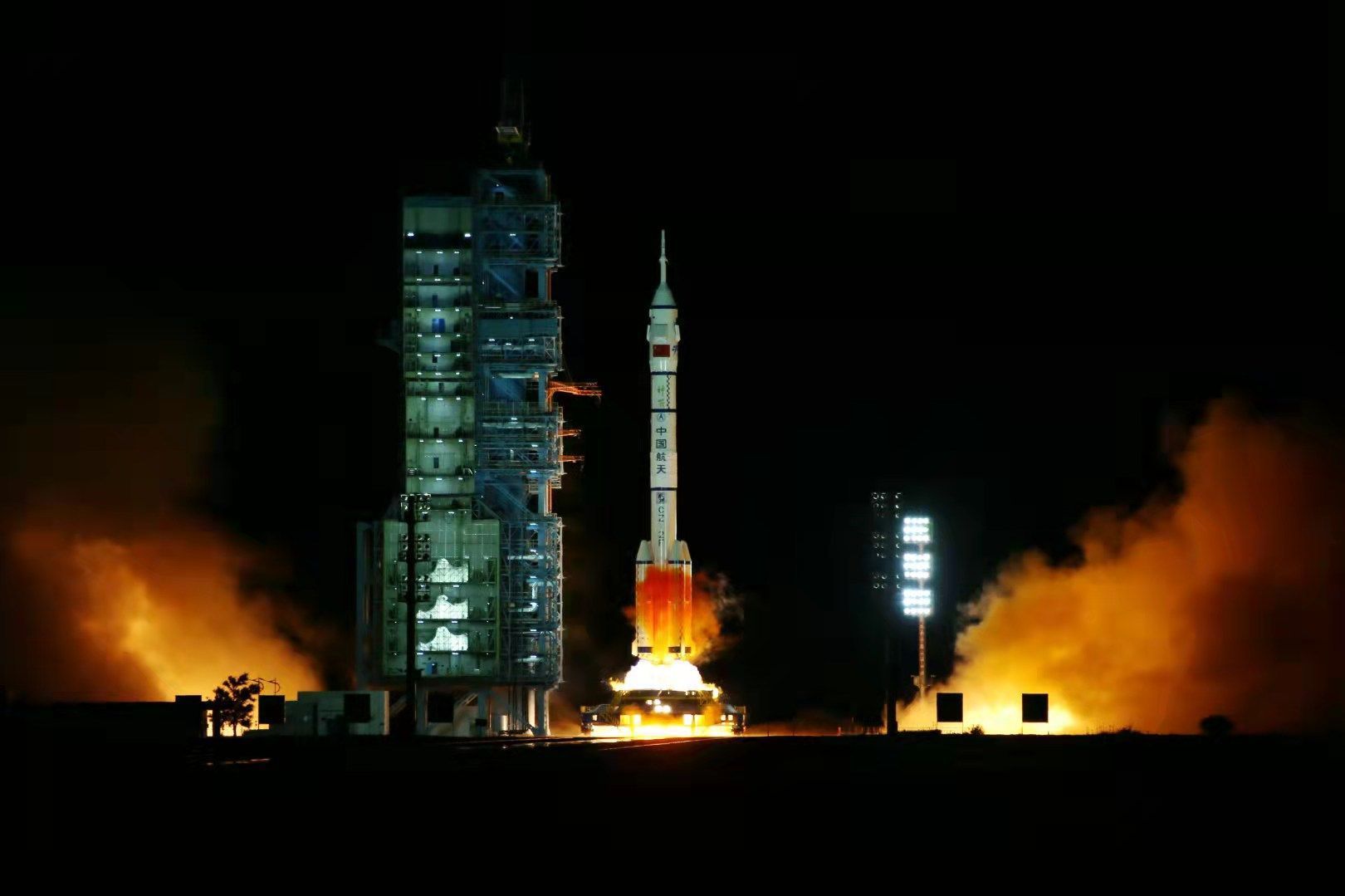 晚上21时许,飞船开始加电,会签流程开始注入,一声声“明白”从酒泉现场传到了飞控大厅,屏幕上是一片黑夜中的长征2F火箭,一样的塔架,不一样的背景。