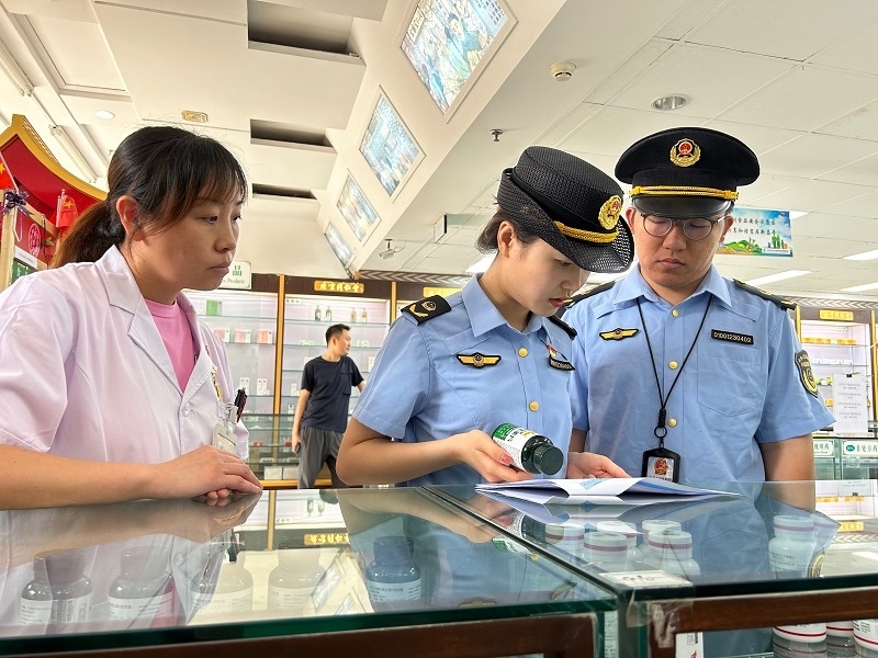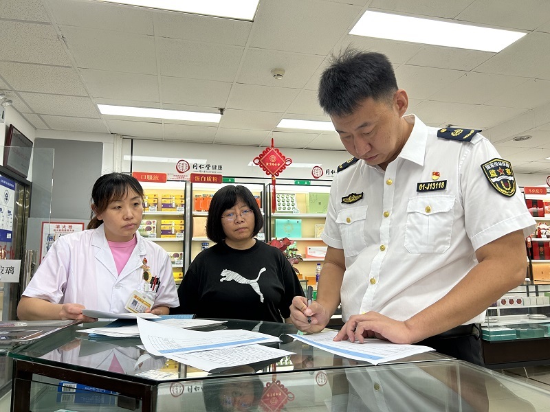 日前,昌平区市场监管局药械科、登记科等多科室联合区消防救援支队、区医保局、区人力社保局等多部门来到天通苑南街道,根据药品零售企业特点及相关监管要求,对111医药馆(天通苑店)、北京同仁堂连锁药店有限责任公司天通花苑药店等药品零售企业统筹开展检查,实施“一业一册”告知制度,推动药店场景实现“一业一单”“一业一查”落地应用。检查过程中,各部门执法人员对应《药品零售企业合规指导手册》《药品零售企业场景综合检查单》逐条逐项进行了详细检查,针对检查情况当场一次性反馈问题并提出合规经营的综合整改建议。