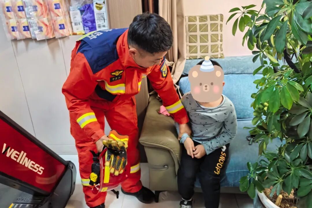 消防员事后了解到,事发时男孩的家人正在跑步机上锻炼,孩子好奇靠近运行中的器械,不慎被履带卷入下方,进而导致腿部被卡。