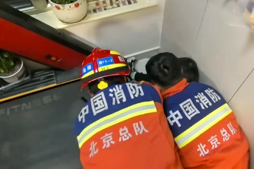 男童腿卡跑步机,顺义消防一分钟成功施救