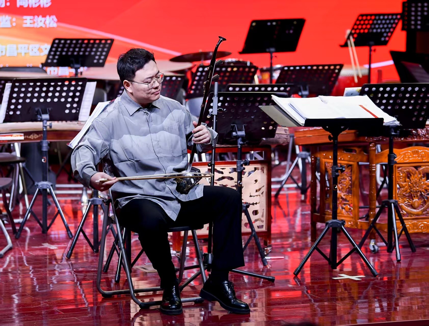 音乐会现场,昌平区民族管弦乐团激情演奏了《庆典序曲》,拉开新年音乐会的序幕,男声独唱《滚滚长江东流水》、琵琶独奏《草原小姐妹》、二胡独奏《你的美丽动我心》等经典曲目,为广大观众奉上一场彰显家国情怀、激扬奋斗的音乐盛典。此外,音乐会还特别呈现了《高山青》《菊花台》《飞驰天路》等现代流行的经典曲目,熟悉的旋律唤起了观众的情感共鸣,展现了传统器乐与当代音乐风格的巧妙融合,为观众带来耳目一新的音乐体验。现场高潮迭起、掌声不断,观众在经典乐章中共享文化盛宴、共贺新年到来。
