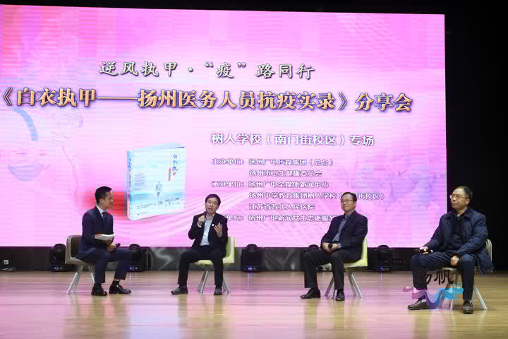弘扬伟大抗疫精神,致敬新时代最可爱的人!今天(11月30日)下午3:00,逆风执甲·“疫”路同行——《白衣执甲——扬州医务人员抗疫实录》分享会走进树人学校南门街校区,一批“战疫英雄”来到现场分享了他们的抗疫经历。