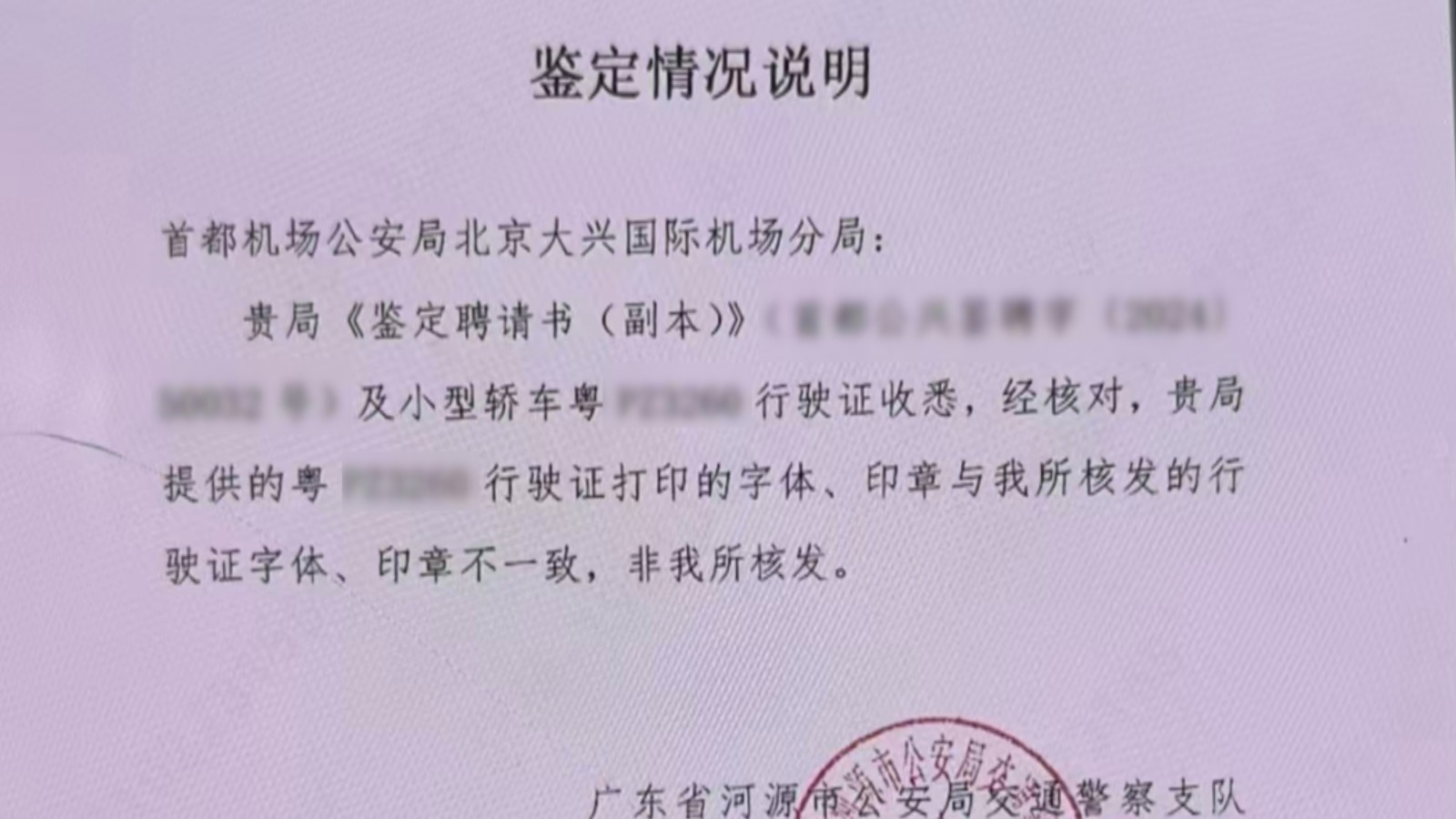 去年7月24日,驾驶人陈某某到大兴机场分局交通警察支队执法站,处理一辆京牌机动车交通违法。窗口民警在核对证件时,发现该车行驶证在当日已办理过多次违法处理业务,且疑似伪造。