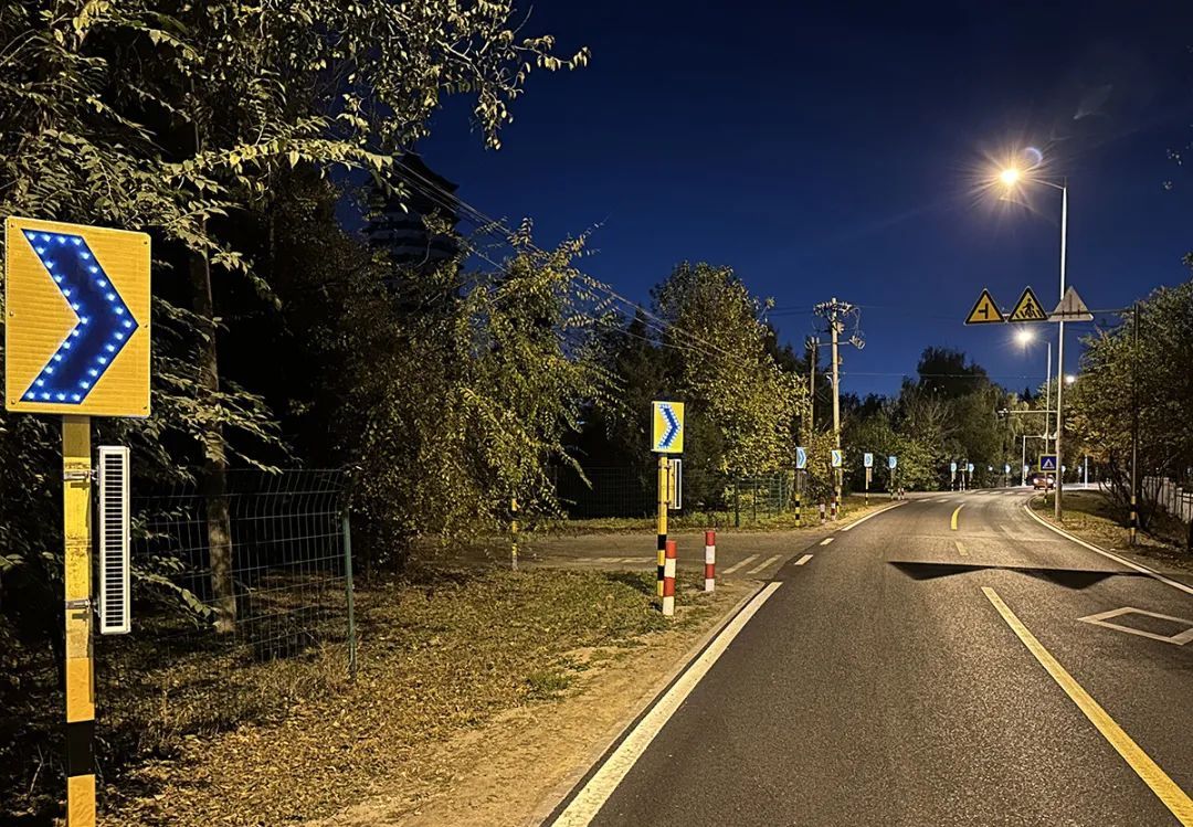 夜间通行提示牌不断闪烁