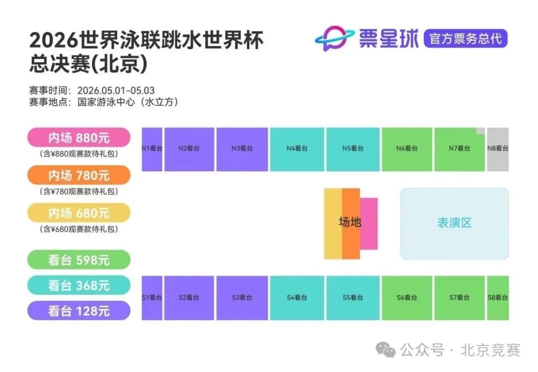 据了解,本次比赛每个比赛日设上、下午两个场次,3日共6个观赛场次,覆盖所有9个单项决赛。票价方面,看台票设有128元、368元、598元三档,场地票包括680元、780元、880元三档。本次比赛的票务销售平台为票星球。