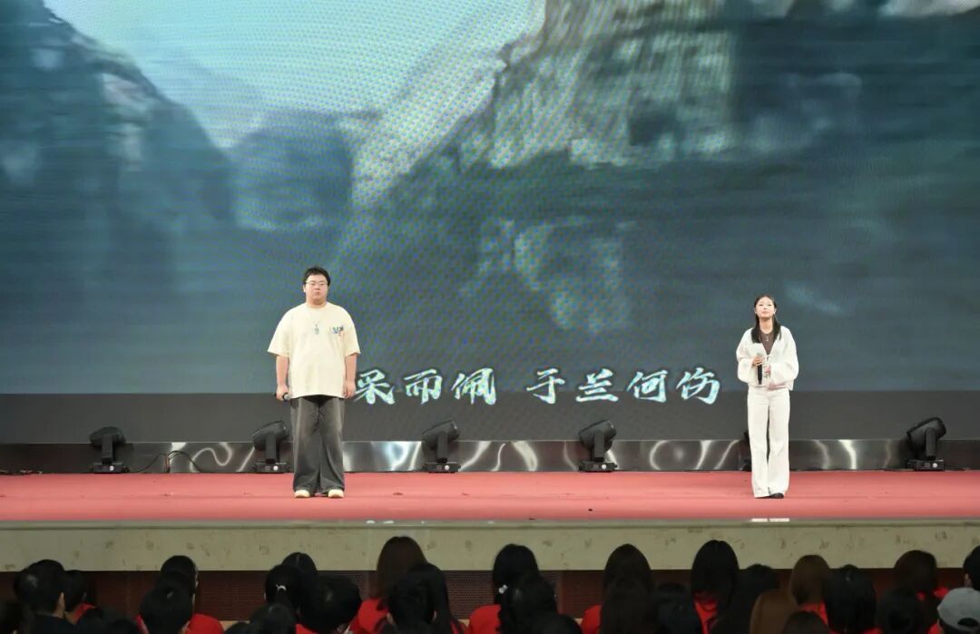 舞蹈落幕,婉转悠扬的《幽兰操》随即唱响。人文社科学院校十佳歌手张子锋和蔡汶君两位同学,以清亮且饱含深情的嗓音,将曲调中蕴含的古韵缓缓释放,悠扬旋律与深刻内涵引发在场师生强烈共鸣。