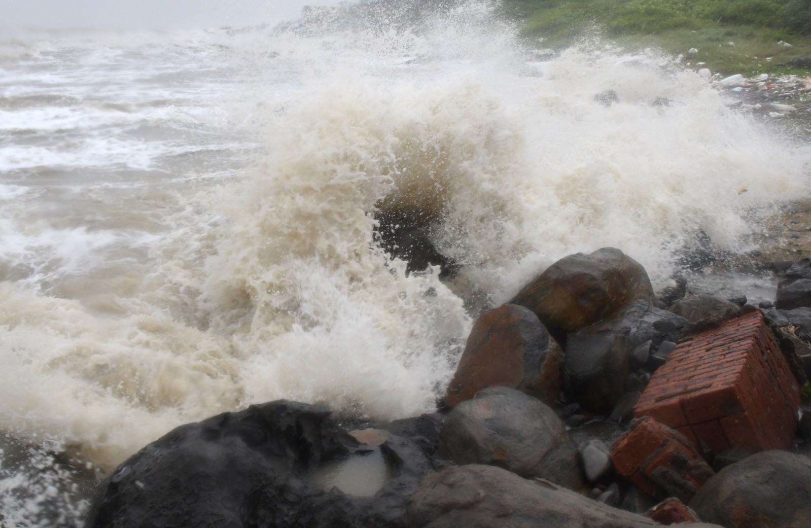 目前,海南岛大部地区已经出现大暴雨,部分乡镇有特大暴雨。海南岛北半部陆地伴有13级至16级大风,街道绿化树木已出现倒伏。海南岛部分市县已出现成片停电情况。