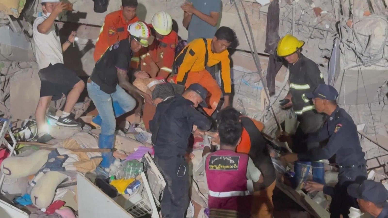 目前,对灾区的救援工作正在持续进行。中国、俄罗斯等多国以及多个国际组织已向缅甸伸出援手,紧急协调救灾援助。缅甸国家媒体29号公布的画面显示,在曼德勒省,一名被埋在废墟下30多个小时的妇女被消防人员成功解救。