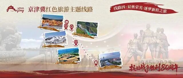 活动现场,北京市文化和旅游局发布五条“京津冀红色旅游主题线路”,包括沉默荣耀·无名荣光之旅、运河文脉·红色寻迹之旅、光影铸魂・战地寻忆之旅、双奥荣光·逐梦新程之旅、国之重器・砺剑铭记之旅,涵盖了焦庄户地道战遗址纪念馆、平津战役纪念馆、狼牙山景区等著名红色旅游点。
