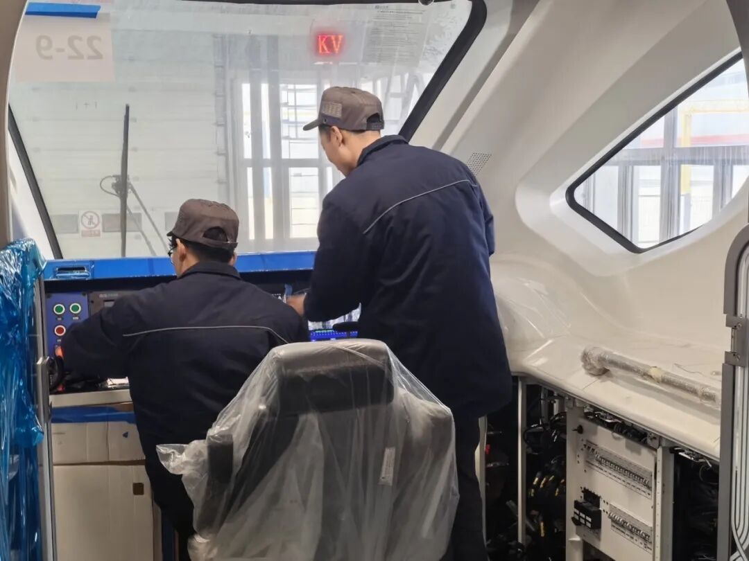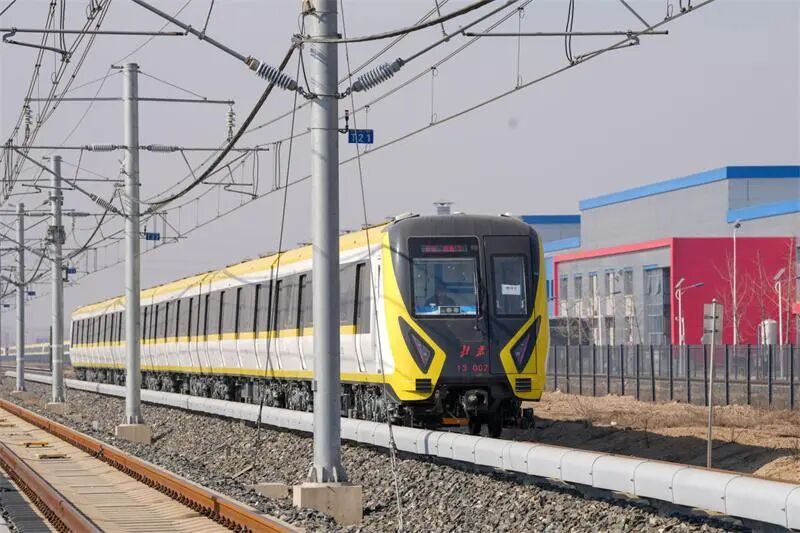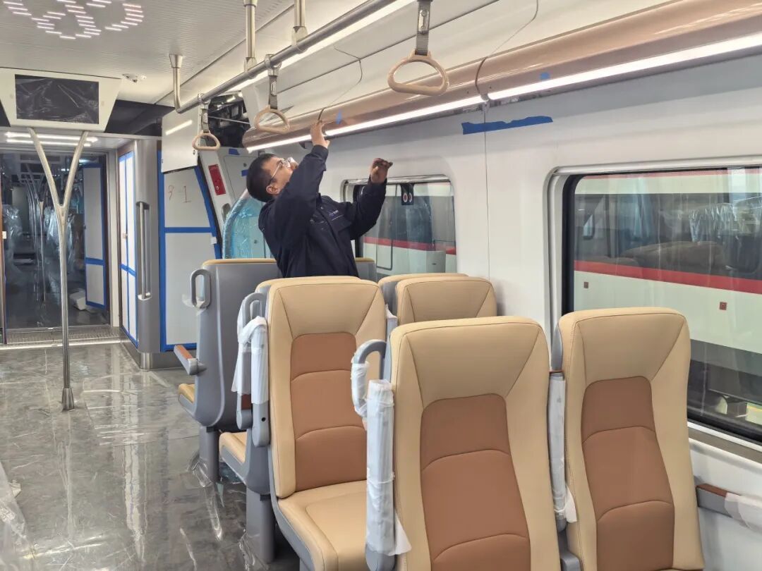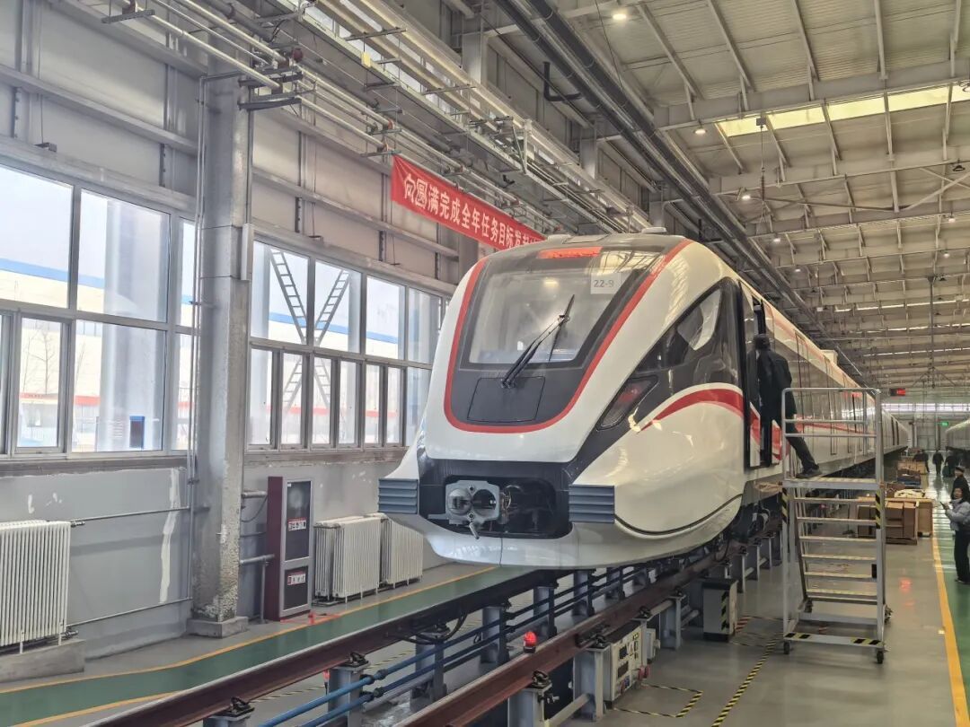 目前,河北京车总共生产32列车。车辆采用8辆编组,车宽3.3米,总长度大约在190米左右。能够在出站、进站,还有区间运行这些场景下,满足全自动无人驾驶。最大运行速度每小时160公里,最大载客量能够达到3000多人。采用了变频空调,车辆的噪音更低。照明采用了智能的感光系统,能够自动调节车内的亮度。座椅采用了横排设置,在城郊大区间的时候可以提高乘客乘坐的舒适度。